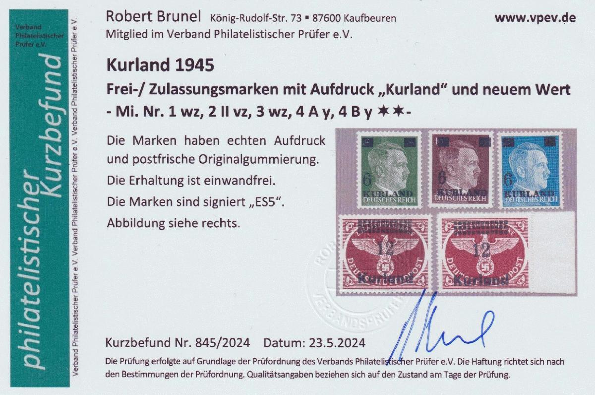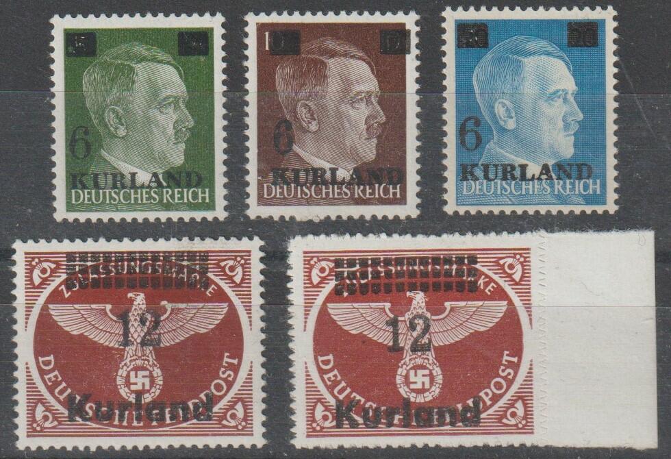 | Zusatzinformationen und Suchstichworte: | Philadria 32. Auktion 12. Oktober 2024 Los 447 Deutsche Besetzung II. WK Kurland 1945 Courland, German Occupation. Complete set of five stamps (Fieldpost stamp in both perforations), MNH of good quality. Ausruf 30,00 EUR |