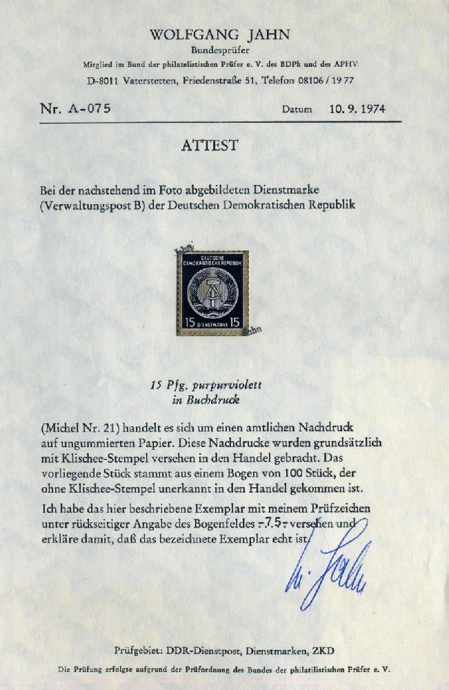| Zusatzinformationen und Suchstichworte: | AAK Webshop Los 1019001301 DDR 15 Pf purpurviolett, Buchdr., Nachdruck auf ungummierten Papier, ungebr. Luxus Festpreis 49,99 EUR |