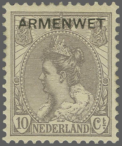 | Zusatzinformationen und Suchstichworte: | Corinphila Veilingen 259. Auktion 13. - 14. September 2024 Los 2166 Niederlande Armenwet 10 cent grijs met variëteit gebroken A, pracht ex. met certificaat Koopman 1976, cat.w. 340 Ausruf 80,00 EUR |
