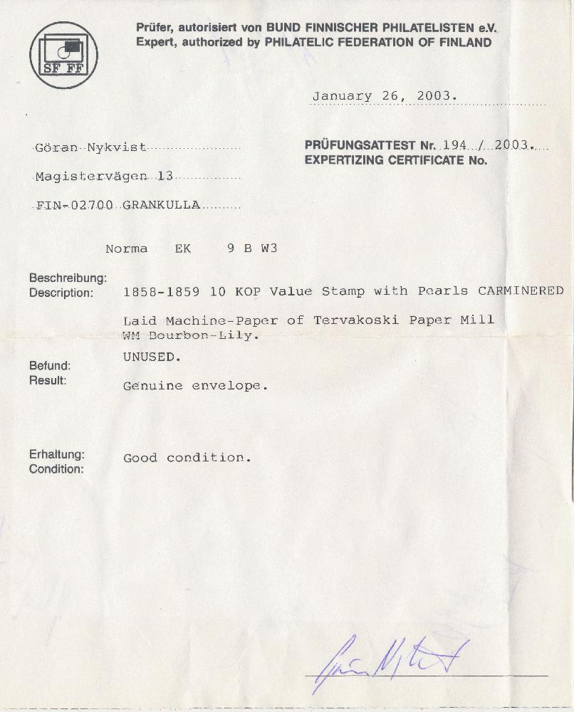 | Prüfer: | Nykvist, Göran (Suomen Filatelistiliiton r.y. (Finnischer Philatelistenverba) |