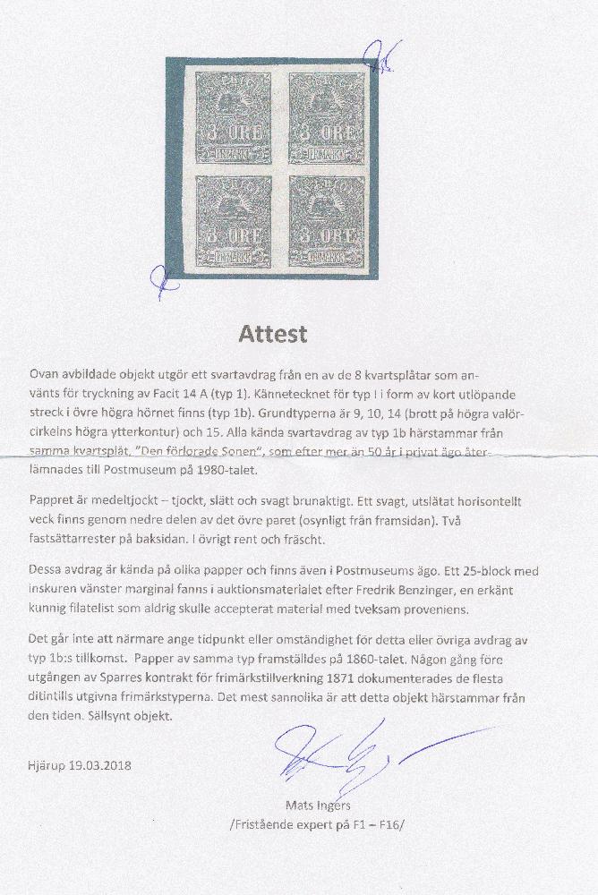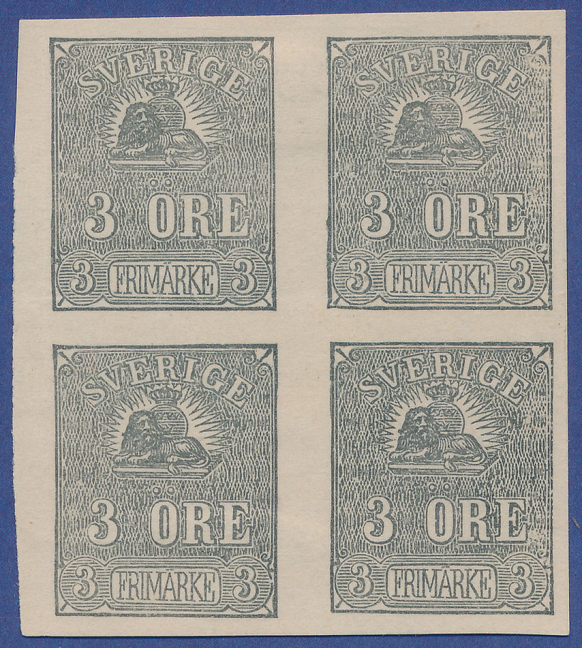 | Zusatzinformationen und Suchstichworte: | Postiljonen 242. & 243. Int. Briefmarken Auktion 24. - 27. September 2024 Los 2174 Schweden Löwen Ausgabe Plate proof type 1b in a block of four of 3 öre type I in grey black colour on slightly yellowish paper. Two stamps with a faint fold Ausruf 750,00 EUR |