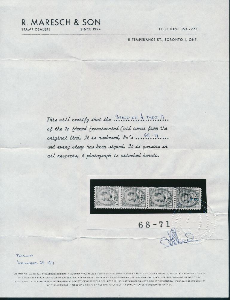 | Zusatzinformationen und Suchstichworte: | Sparks 51. Auktion 17. - 19. Oktober 2024 Los 95 Canada 1910, 1c. grün Edward VII experimentellen Rollenmarke, senkrechter Viererstreifen, gestempelt mit Ottawa roller, leicht nummeriert in Bleistift (68-71) und abgezeichnetes auf der Rückseite, mit 1971 R. Maresch und Sohn Beglaubigung behauptend jenes dieser Streifen "stammt aus der original findendem" und wurde signiert, raue Zähnung rechts und mit typischen Zentrierung, sonst in Ordnung. Unitrade $800 Ausruf 50,00 CAD |
