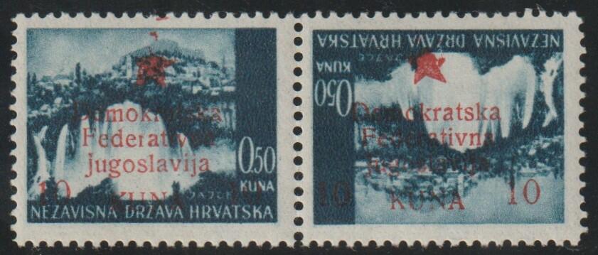| Zusatzinformationen und Suchstichworte: | Philadria 32. Auktion 12. Oktober 2024 Los 295 Jugoslawien Volksrepublik Bosnien u. Herzegowina 1945 Bosnia, Mostar Provisional Issue 1945. Kn. 10 on Kn. 0.50 stamp in horizontal "tete - beche" pair. Overprint on right stamp is therefore inverted. Only ten such pairs were possible. Stamps are MNH of very good quality. Perfs in the middle are separated to middle of the stamps Ausruf 200,00 EUR |