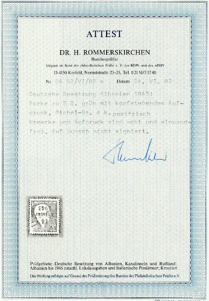 | Prüfer: | Rommerskirchen, Helmut (BPP (Bund Philatelistischer Prüfer)) |