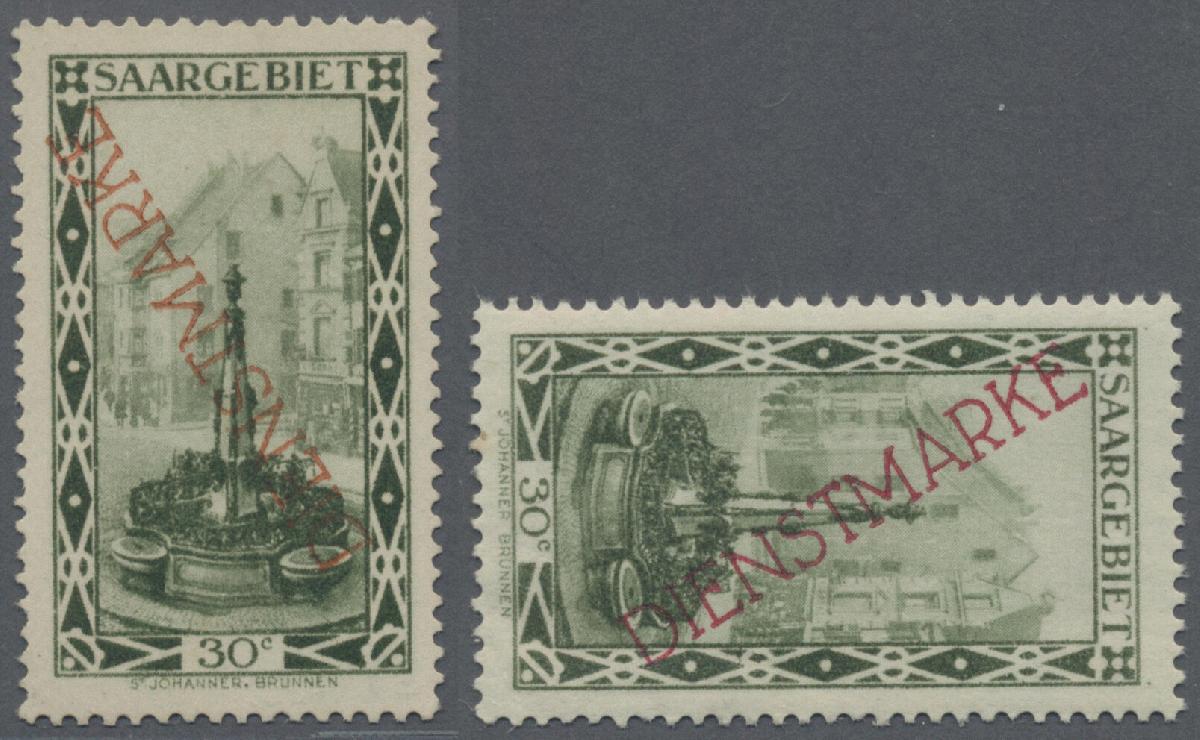 | Zusatzinformationen und Suchstichworte: | Christoph Gärtner 60. Auktion 16. Oktober 2024 Los 7389 Saar 1930, 30 C. Freimarke mit steilem "DIENSTMARKE"-Aufdruck dunkelgrünoliv mit Aufdruck in "lebhaftbräunlichrot", ungebraucht mit Originalgummi und Entfalzungsspuren, je doppelt signiert Dr.Dub und Schubert, dessen Expertise von 1977 beiliegt, ebenso liegt eine Vergleichsmarke mit karminrotem Aufdruck bei. Seltene und immer gesuchte Variante (Mi€ 1.500,-) Ausruf 250,00 EUR |