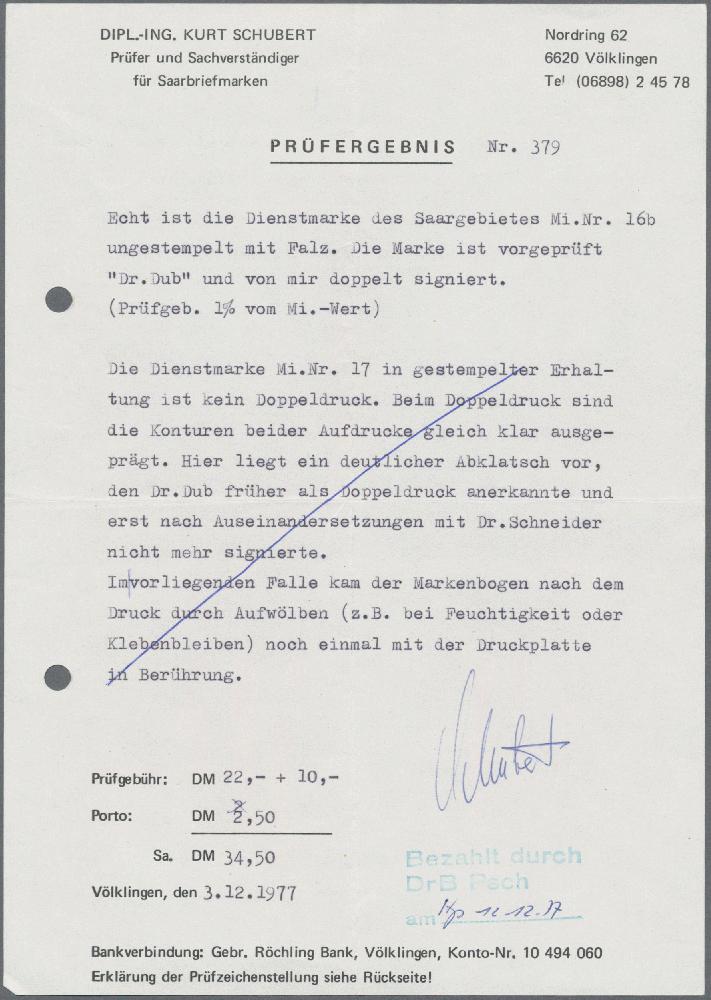 | Prüfgebiet: | Saargebiet (Mi-Nr. 1 - 205) |