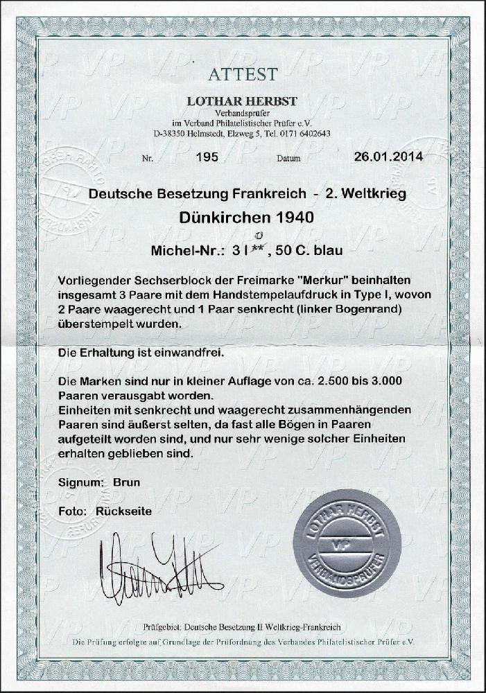 | Prüfgebiet: | Deutsche Besetzung WK 2 Frankreich Dünkirchen |