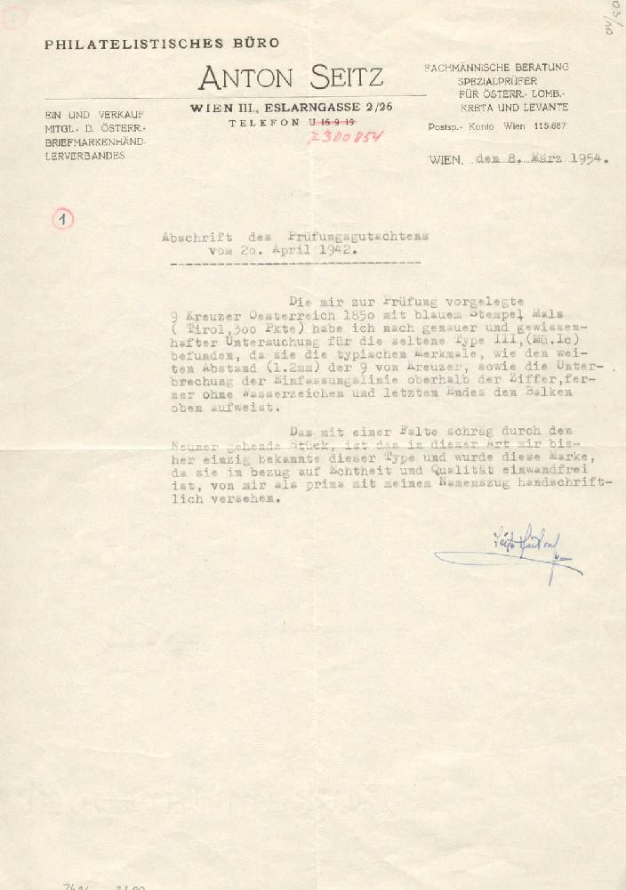| Zusatzinformationen und Suchstichworte: | 25. classicphil GmbH Auktion 21. August 2024 Los 1744 Österreich Ausgabe 1850 1850, 9 kr, blau, größte Entfernung 9 und K - 1,2mm - P27w, groß Papierfalten, oben mit Balken/bunt spacer, zum Teil ausgefallen blau MALS 1 ... JUL, Müller 500p - Sassone 13p, ex Demuth/Reisch, gute Ränder, Zuschlag 1.200,00 EUR |