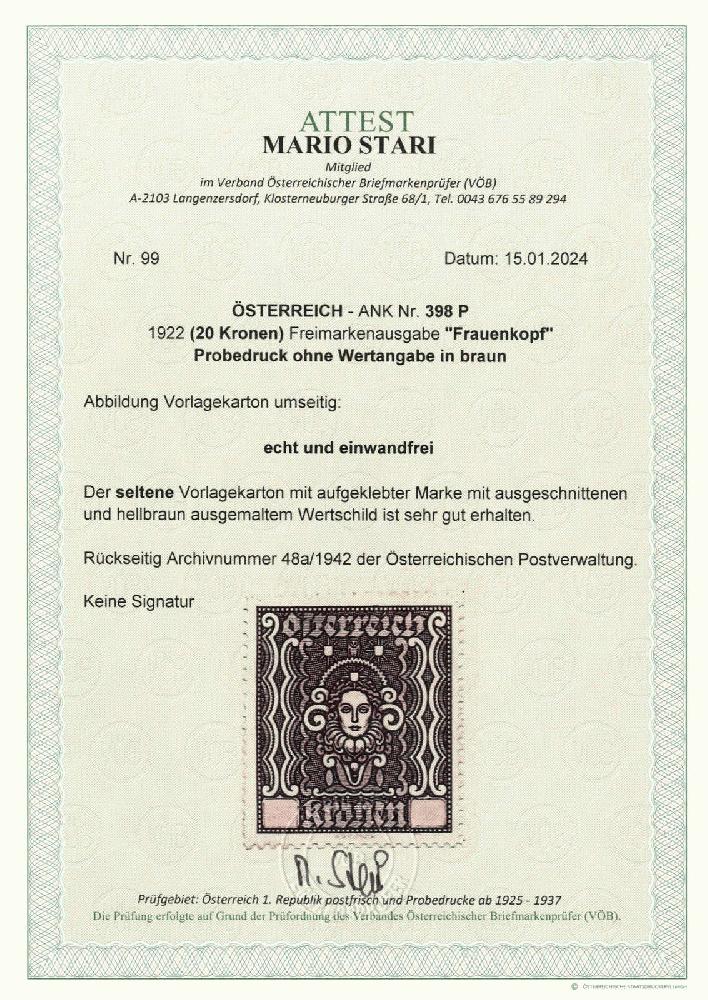 | Prüfer: | Stari, Mario (VÖB (Verband Österreichischer Briefmarkenprüfer)) |