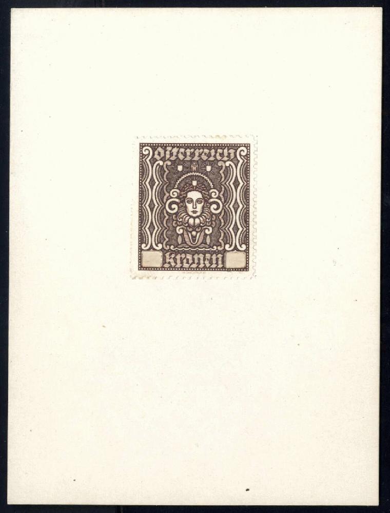 | Zusatzinformationen und Suchstichworte: | Viennafil 90. Live-Auktion 4. - 6. Juni 2024 Los 1388 Österreich 1. Republik 1922, Frauenkopf, brauner Probedruck der 20 Kronen in anderer Zeichnung mittig Kronen und die Wertangabe ausgeschnitten auf Vorlagekarton, sehr selten Zuschlag 520,00 EUR |