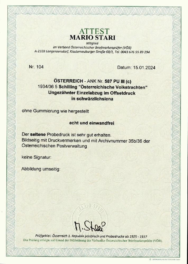 | Prüfer: | Stari, Mario (VÖB (Verband Österreichischer Briefmarkenprüfer)) |