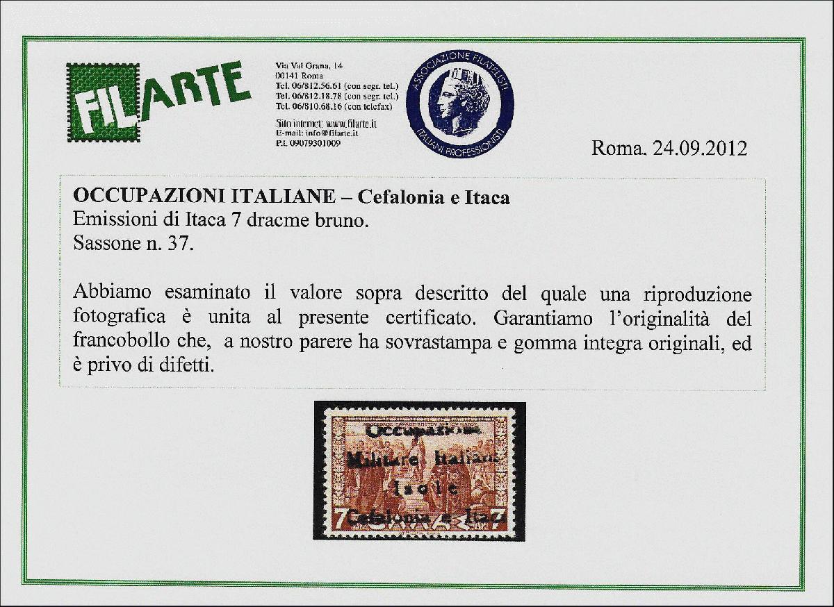 | Zusatzinformationen und Suchstichworte: | Filatelia Gazzera Auktion 15. Oktober 2024 Los 592 Ionische Inseln Lokal Kefalonia und Ithaka 1941 Lettera "O" maiuscola Mitologica d.7 bruno (37 cat.14000) nuovo con gomma integra Ausruf 2.500,00 EUR |