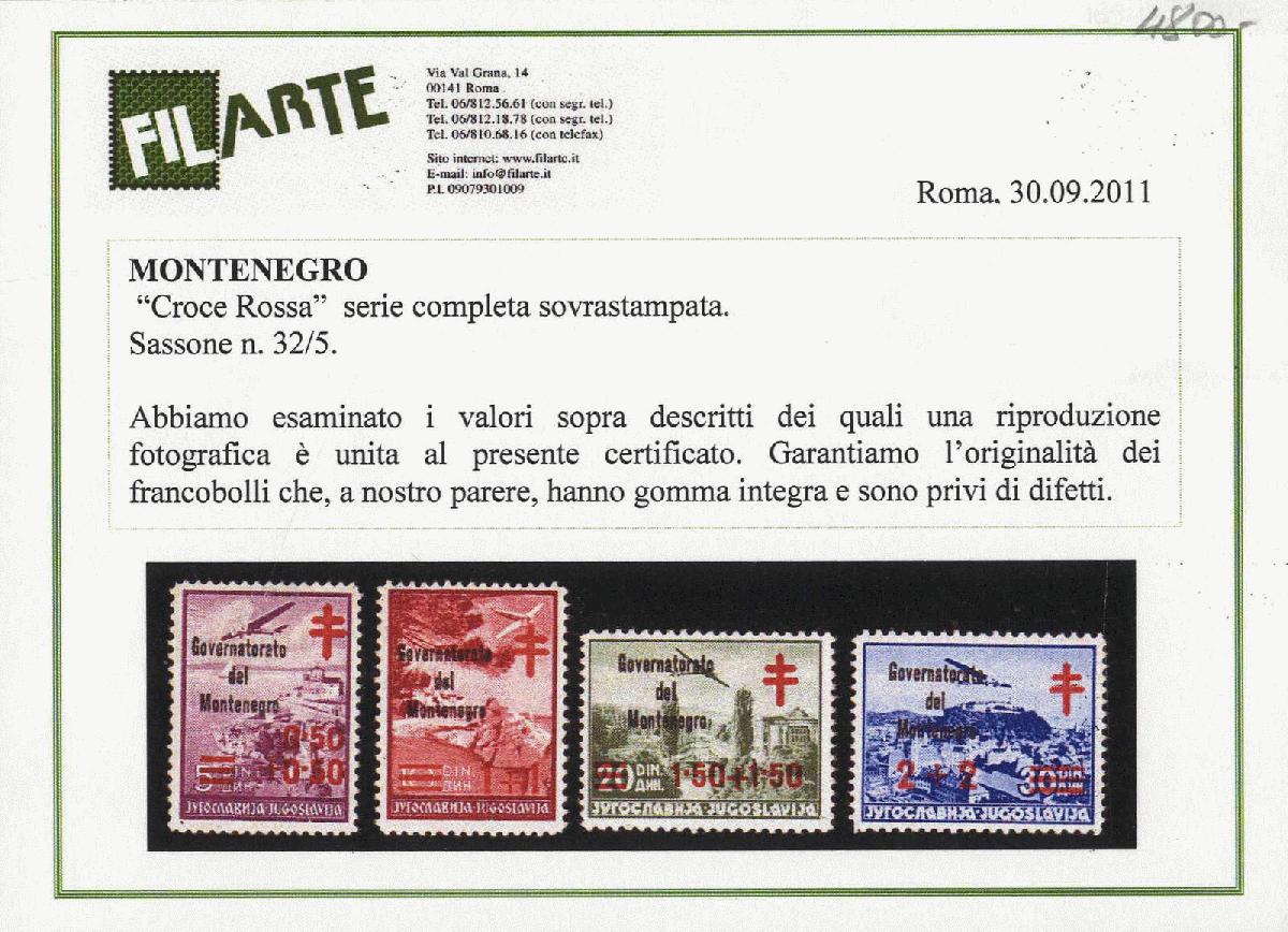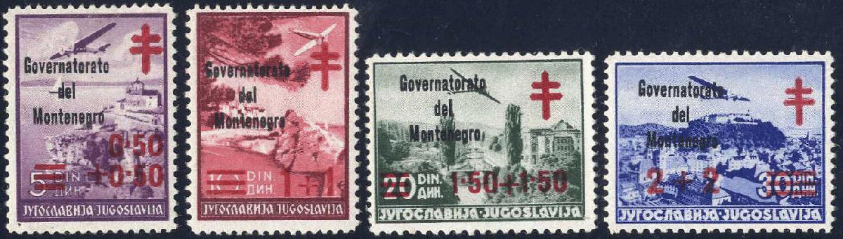 | Zusatzinformationen und Suchstichworte: | Viennafil 92. Auktion - online Live 15. Oktober 2024 Los 11537 Italien Besetzung II. WK Montenegro 1942, Jugoslavia con soprastampa nera "Croce Rossa", serie completa 4 valori nuovi con gomma integra Ausruf 980,00 EUR |