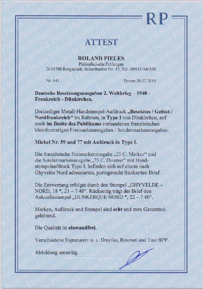 | Prüfgebiet: | Deutsche Besetzung WK 2 Frankreich Dünkirchen |