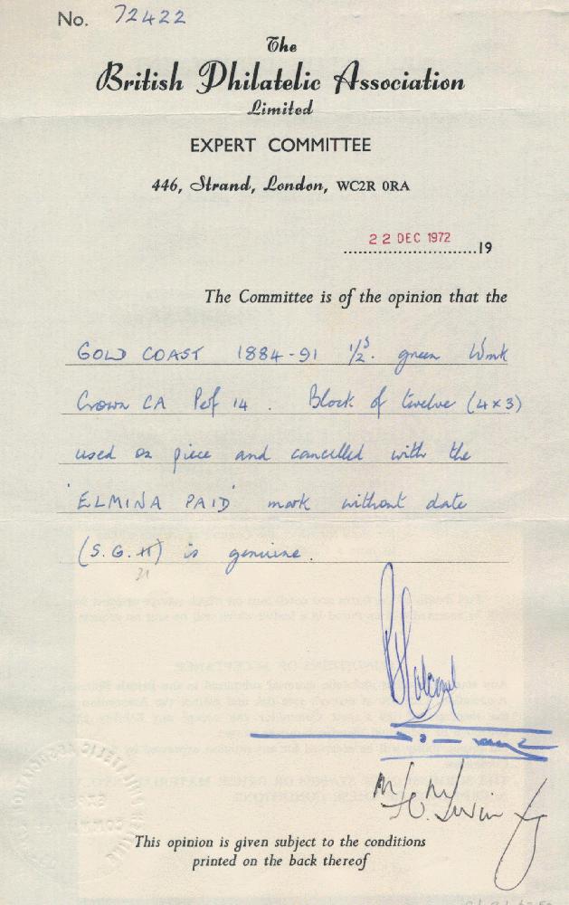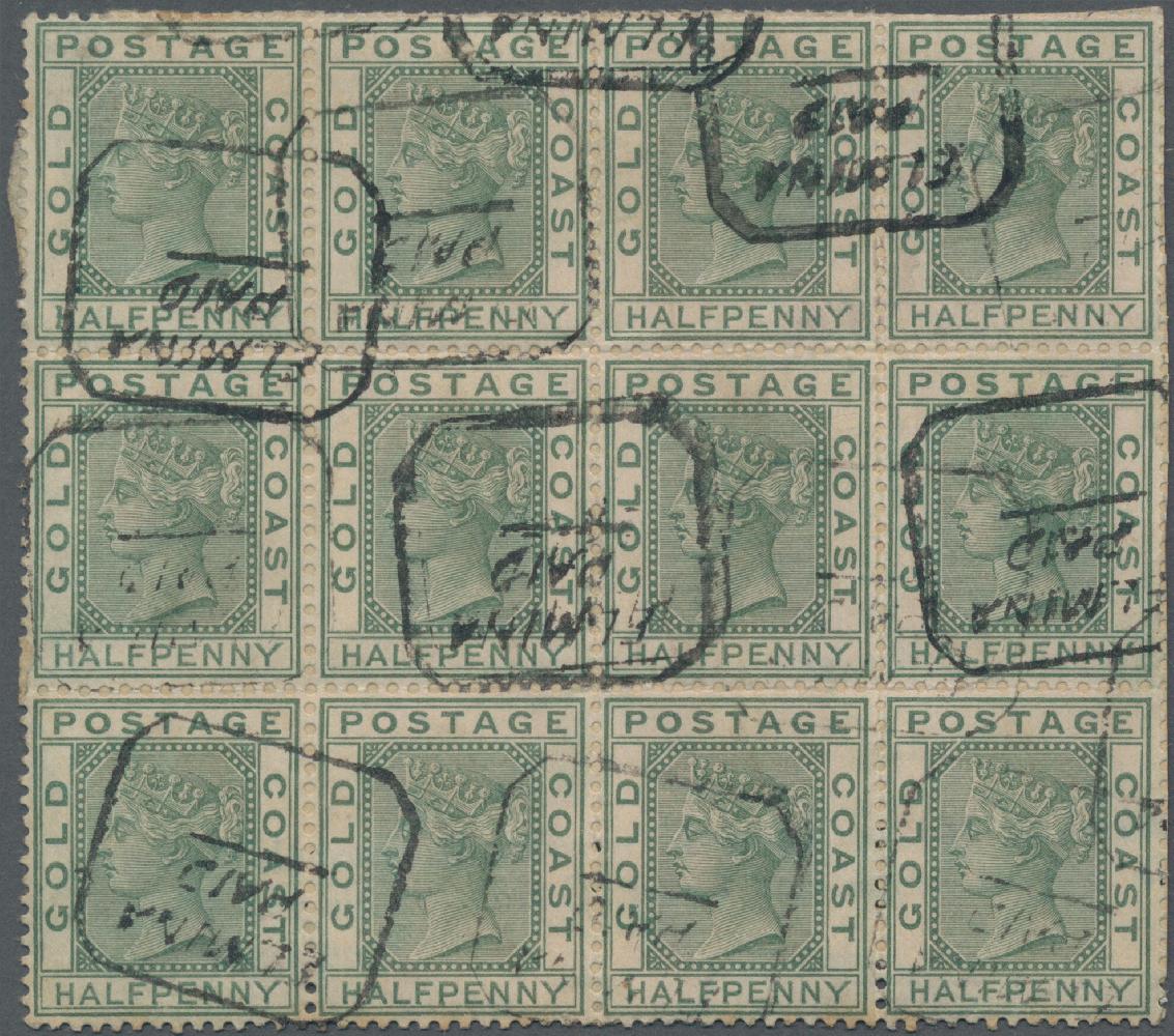 | Zusatzinformationen und Suchstichworte: | Christoph Gärtner 60. Auktion 16. Oktober 2024 Los 4120 Goldküste 1884,/91,1/2d grün Wasserzeichen Krone CA Zähnung 14, ein Zwölferblock (4x 3) gestempelt auf Briefstück Stempel bei 10 Abschläge des ohne Datum eingerahmt "Elmina/gezahlt" Ausruf 250,00 EUR |