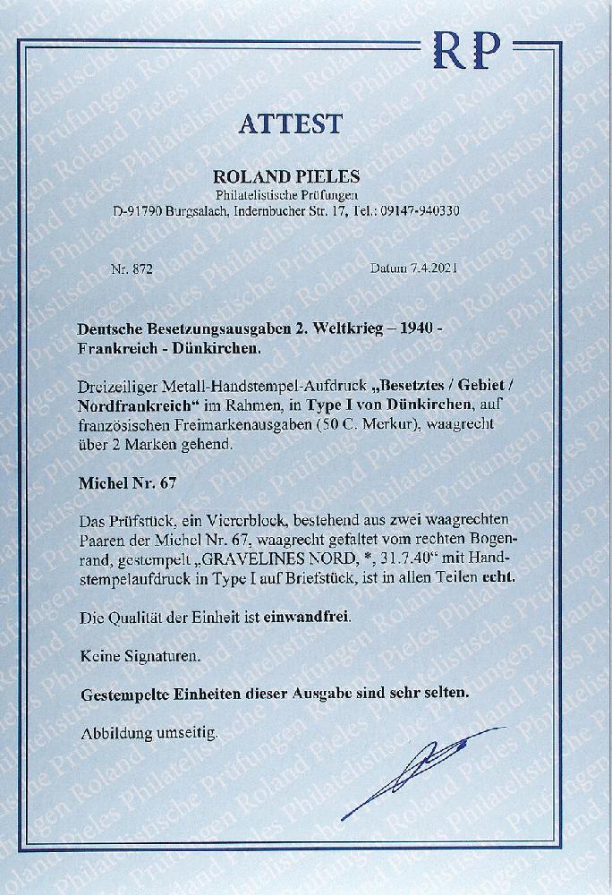 | Prüfgebiet: | Deutsche Besetzung WK 2 Frankreich Dünkirchen |