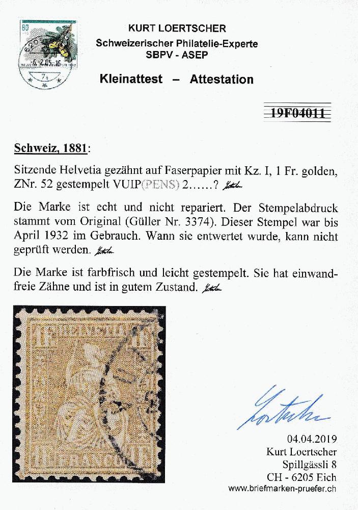 | Prüfer: | Loertscher, Kurt (SBPV / ASEP (Schweizerischer Briefmarken-Prüfer-Verband)) |