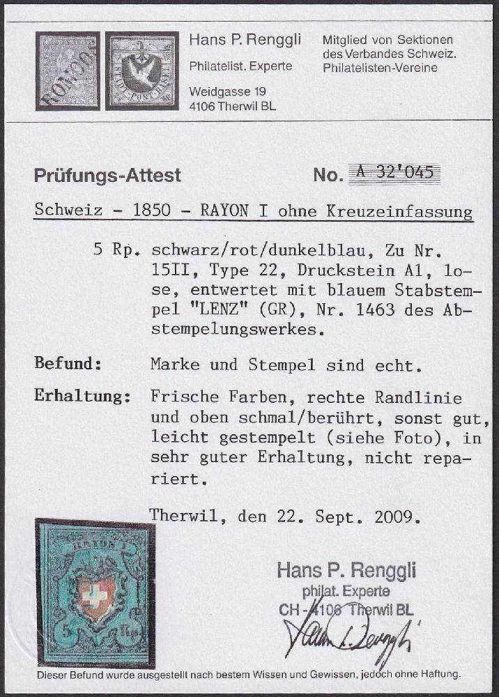 | Prüfer: | Renggli, Hans P. (SBPV / ASEP (Schweizerischer Briefmarken-Prüfer-Verband)) |