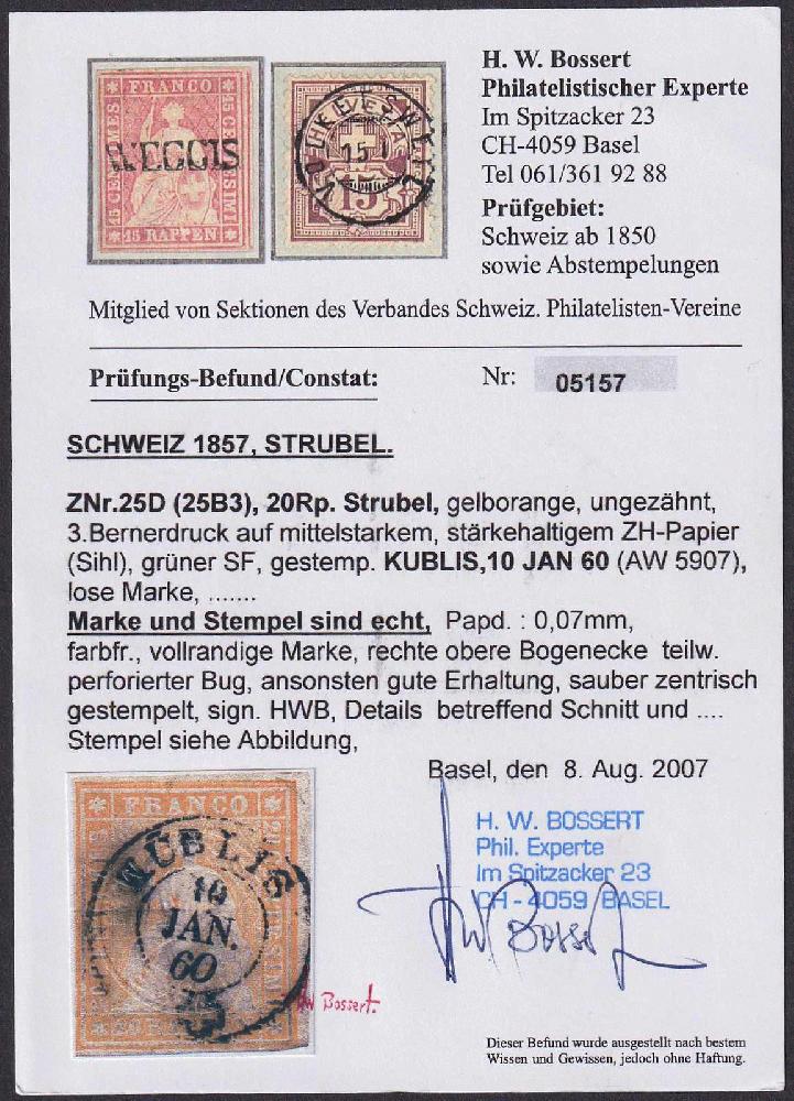 | Prüfer: | Bossert, H. W. (SBPV / ASEP (Schweizerischer Briefmarken-Prüfer-Verband)) |