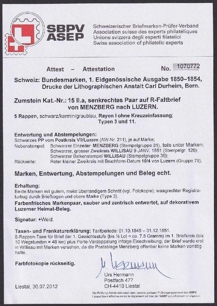| Prüfer: | Hermann, Urs (SBPV / ASEP (Schweizerischer Briefmarken-Prüfer-Verband)) |