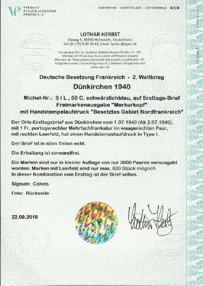 | Prüfgebiet: | Deutsche Besetzung WK 2 Frankreich Dünkirchen |