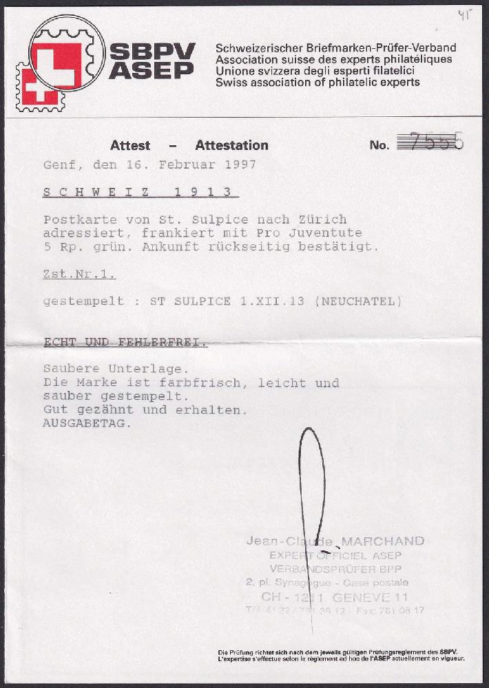 | Prüfer: | Marchand, Jean-Claude (SBPV / ASEP (Schweizerischer Briefmarken-Prüfer-Verband)) |