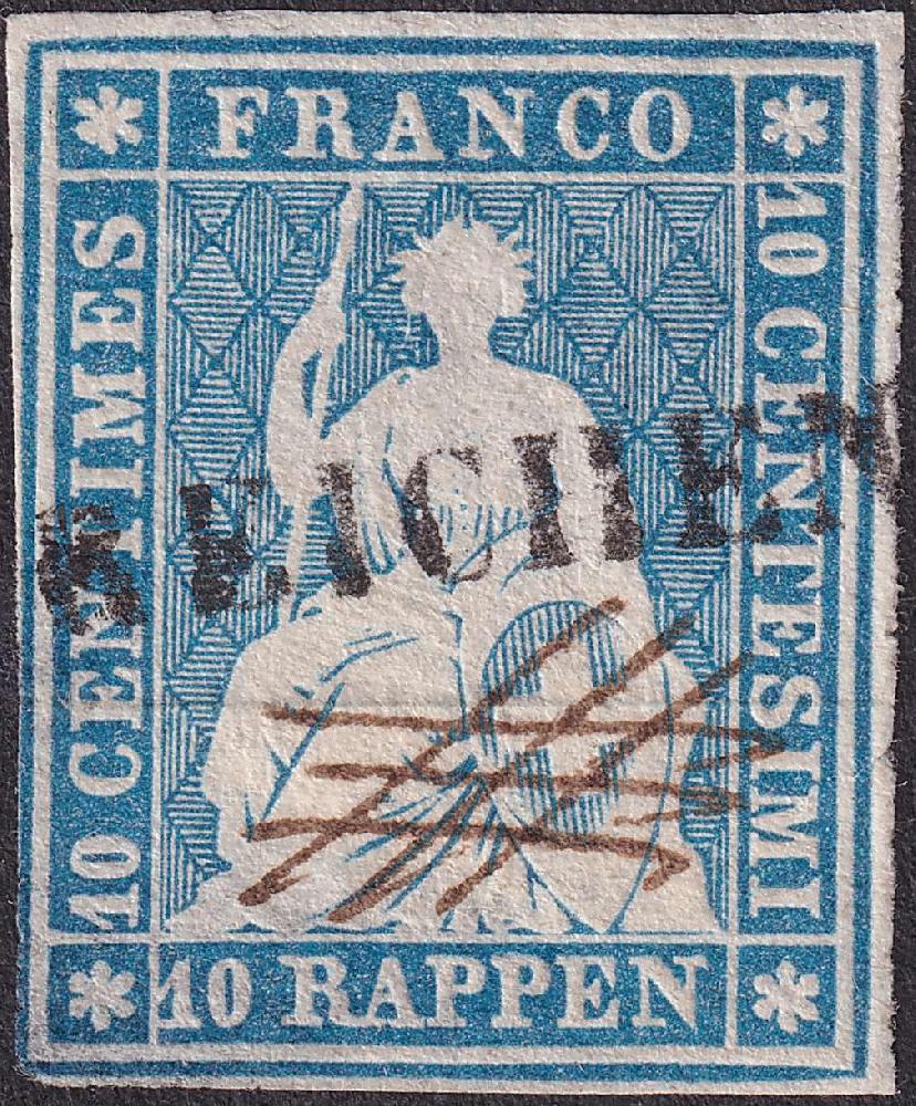 | Zusatzinformationen und Suchstichworte: | Luzernerraute Webshop Los 0000201453 Kanton Schwyz 10c preussischblau, 23A3.c REICHENBURG SZ / TINTEN-GITTER (Parallelogramm) berührt bis breitrandig, rückseitig dünn, attraktive Doppelentwertung Festpreis 240,00 CHF |