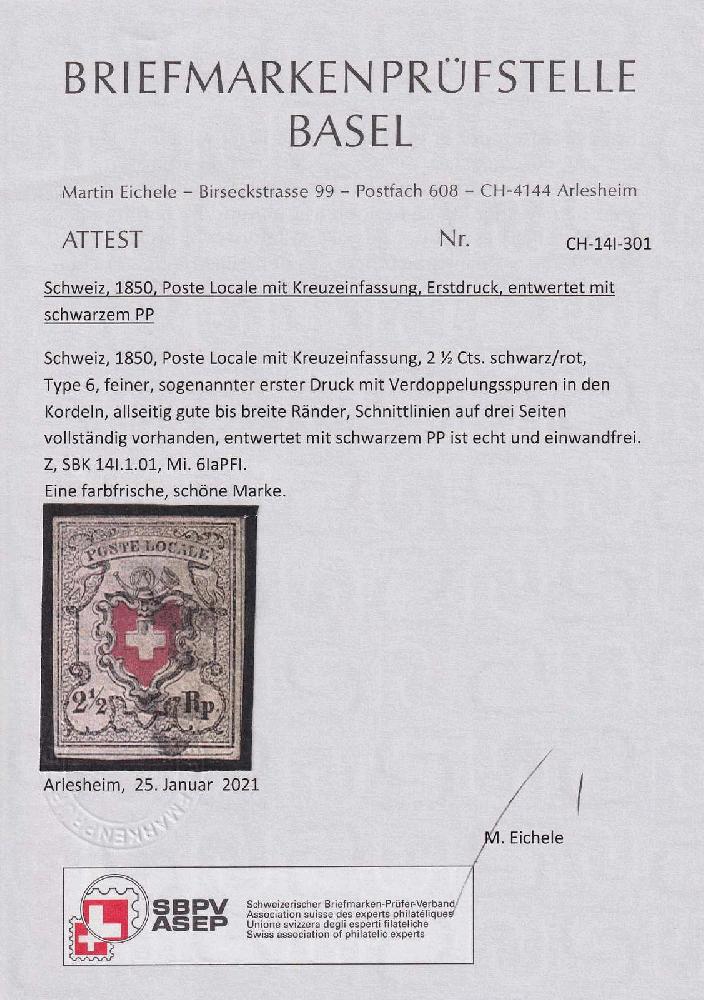 | Zusatzinformationen und Suchstichworte: | Luzernerraute Webshop Los 0003800681 Kanton Tessin Type 6, Erstdruck mit P.P von BELLINZONA entwertet, breitrandige sehr frische Marke, minim faserig rückseitig, Schnittlinien fast vollständig Festpreis 850,00 CHF |