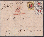 | Zusatzinformationen und Suchstichworte: | Luzernerraute Webshop Los 0002601123 Kanton Thurgau MISCHFRANKATUR von SULGEN (TG) nach Herisau (AR): 13II Paar (Type 26+27) und 16II.aa (TABAK) T.28 A1-U, Marken stark unterschiedlich geschnitten mit P.P. entwertet, farbfrische Durheim-Marken auf sehr seltener Drei-Marken-Frankatur, 15-Rp. auf höhergewichtiger Nachnahme mit vollständigem Inhalt, Attest Hermann (20) + ABT (87) Nur 7 Briefe bekannt, 13II T.6 oben mit markantem Plattenfehler, SBK: 35'000.-+ Festpreis 6.200,00 CHF |