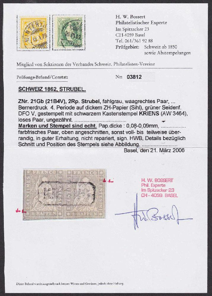 | Prüfer: | Bossert, H. W. (SBPV / ASEP (Schweizerischer Briefmarken-Prüfer-Verband)) |