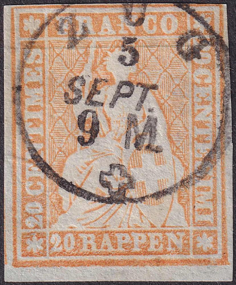 | Zusatzinformationen und Suchstichworte: | Luzernerraute Webshop Los 0000100932 Kanton Zug 20c dunkelgelblichorange, 25F/25B1mm, eisklar zentrisch entwertet von ZUG, fehlerfrei mit Attest Nussbaum (1987) Erstklassige Marke für eine Heimatsammlung ! Festpreis 350,00 CHF |