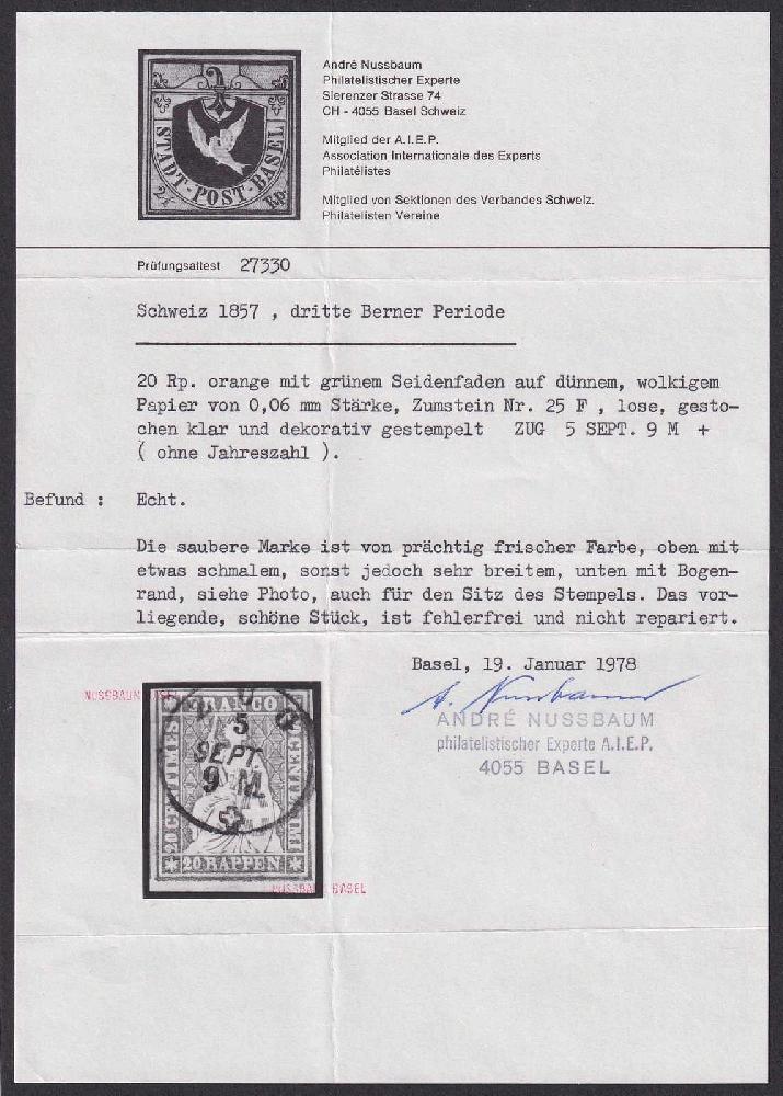 | Prüfer: | Nussbaum, André (SBPV / ASEP (Schweizerischer Briefmarken-Prüfer-Verband)) |