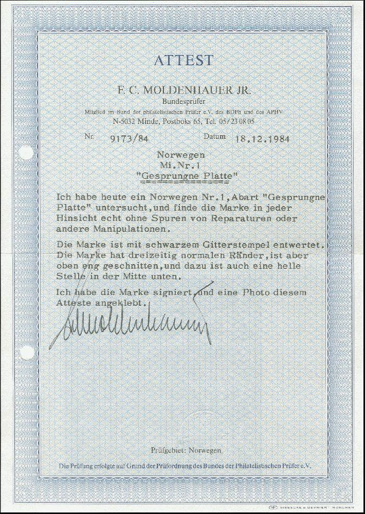 | Prüfer: | Moldenhauer, Frantz-Caspar (BPP (Bund Philatelistischer Prüfer)) |