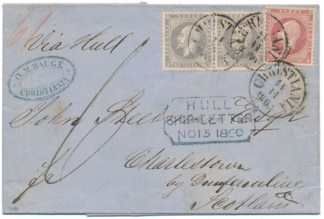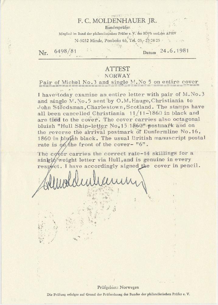 | Zusatzinformationen und Suchstichworte: | Postiljonen 242. & 243. Int. Briefmarken Auktion 24. - 27. September 2024 Los 932 Norwegen Skilling Oskar Very beautiful cover to Scotland with full contents at the 14 sk. rate paid with a pair of 3 sk and a single 8 sk. "CHRISTIANIA 11.11 1860". Ex. Earl Jacobsen & Sanguineti Zuschlag 400,00 EUR |