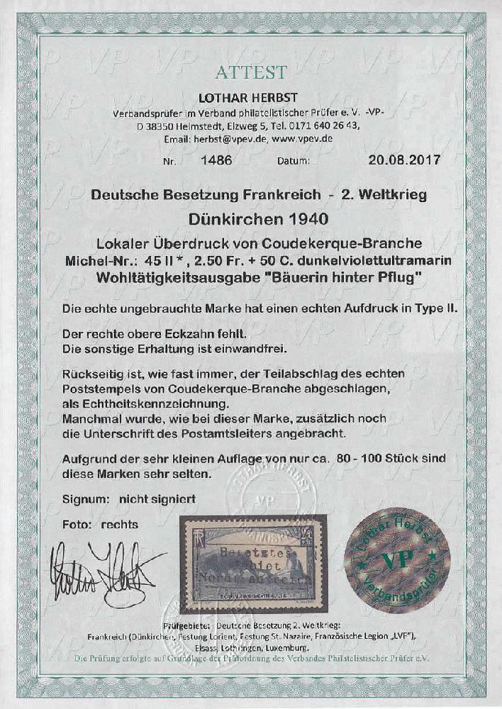 | Prüfgebiet: | Deutsche Besetzung WK 2 Frankreich Dünkirchen |