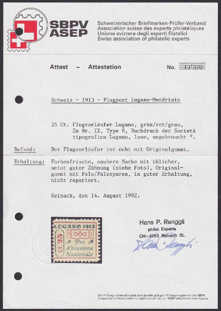| Prüfer: | Renggli, Hans P. (SBPV / ASEP (Schweizerischer Briefmarken-Prüfer-Verband)) |