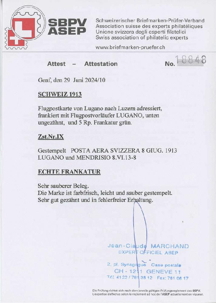 | Prüfer: | Marchand, Jean-Claude (SBPV / ASEP (Schweizerischer Briefmarken-Prüfer-Verband)) |