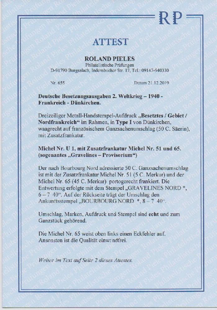 | Prüfgebiet: | Deutsche Besetzung WK 2 Frankreich Dünkirchen |