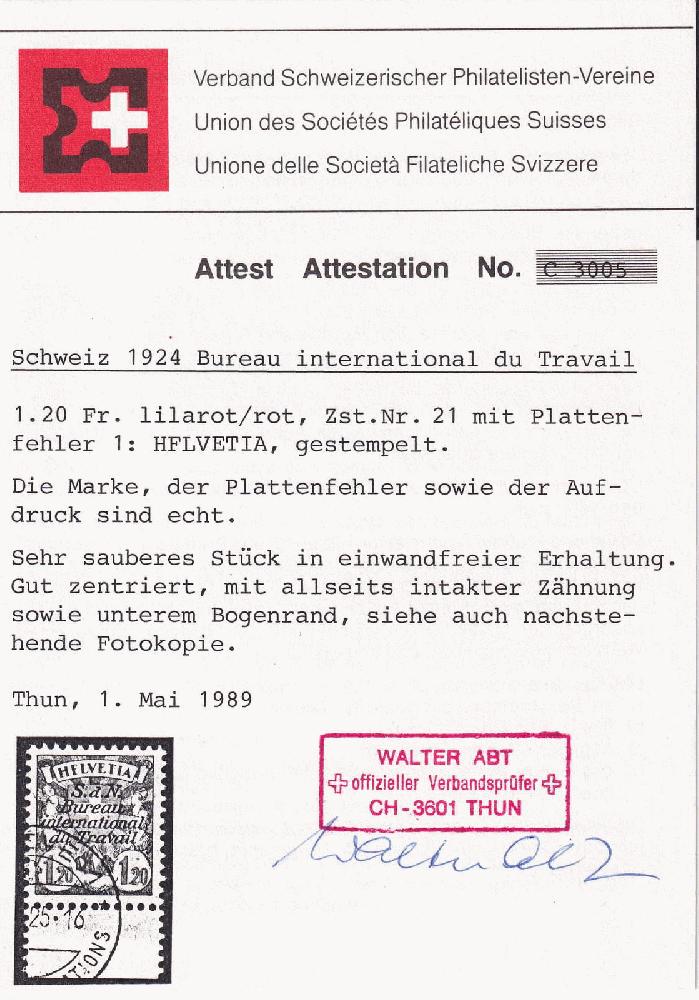 | Prüfer: | Abt, Walter (SBPV / ASEP (Schweizerischer Briefmarken-Prüfer-Verband)) |