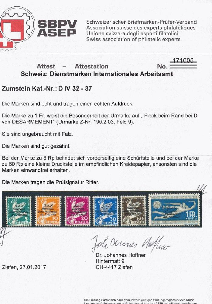 | Zusatzinformationen und Suchstichworte: | Pilatusmail Frühlingspreisliste 2024 Los 2533 Bureau int. du Travail (BIT) 1932, Serie (6), 1Fr Plattenfehler beim D, Attest Hoffner Festpreis 1.050,00 CHF |