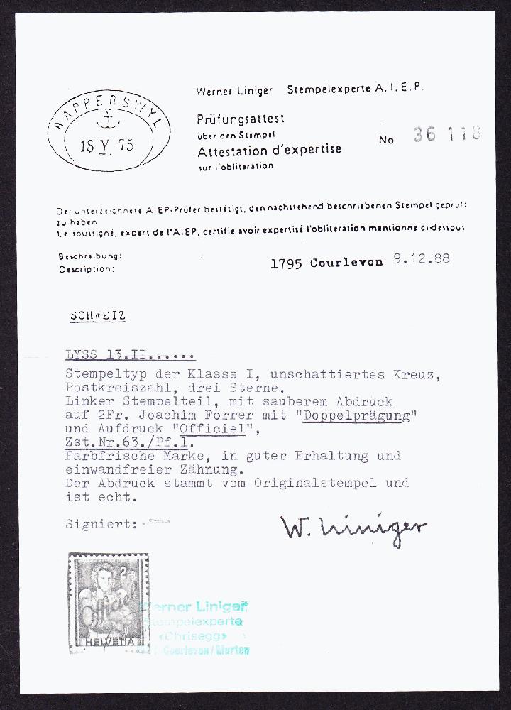 | Prüfer: | Liniger, Werner (AIEP (Association internationale des experts en philatélie)) |