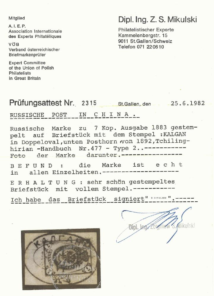 | Prüfgebiet: | Russland - Russische Post in China |