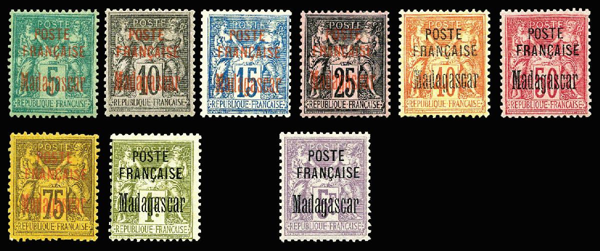 | Zusatzinformationen und Suchstichworte: | La Postale Philatélie 46. Auktion 4. Oktober 2024 Los 3436 Madagaskar N°14/22, Série de 1895, les 9 valeurs fraîcheur postale, SUP (certificat) Qualité: * Cote: 1290 euros Ausruf 400,00 EUR |