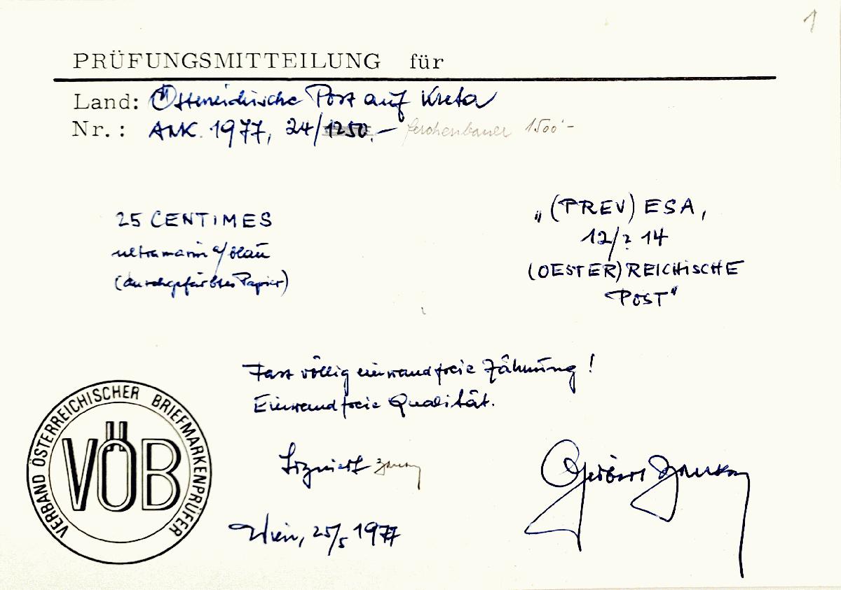 | Prüfer: | Zenker, Gisbert (VÖB (Verband Österreichischer Briefmarkenprüfer)) |