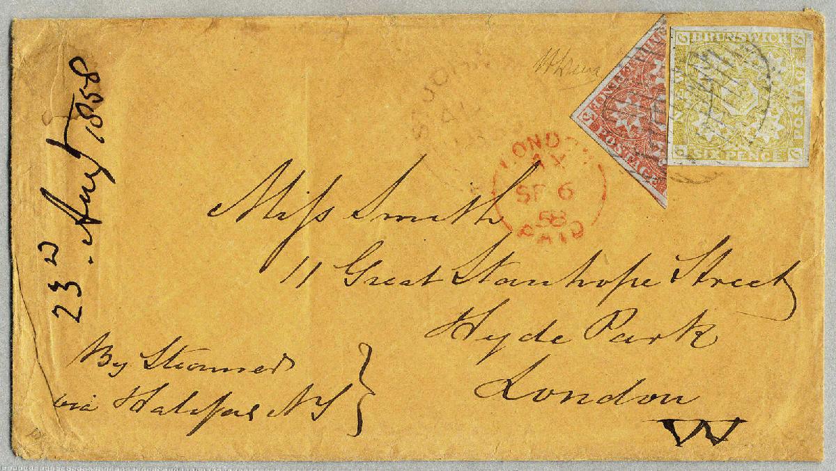 | Zusatzinformationen und Suchstichworte: | 26. classicphil GmbH Auktion 4. November 2024 Los 699 Neubraunschweig 1858, halbierte 3 d/mattrot auf bläulichem Papier zusammen mit Pracht 6 d/olivgelb auf bläulichem Papier, auf Brief nach LONDON, Miss Smith Korrespondenz, Vermerk unten links mit dem Dampfschiff über HALIFAX NS, mit sauber glasklar Abschlag des oval Gitter Stempeln in schwarz, mit ST. JOHNS/PAID AU 1858 Abfertigung, befördert auf der Dampfer Niagara, daneben mit Ankunft LONDON/PAID/SP 6 58 Kreisdatumsstempel in rot, eine großartige frisch, attraktiv und außerordentlich seltener Brief Ausruf 2.200,00 EUR |