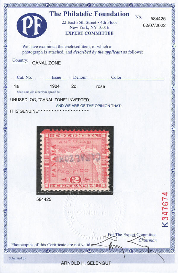 | Prüfer: | The Philatelic Foundation, (Prüferkommission) |