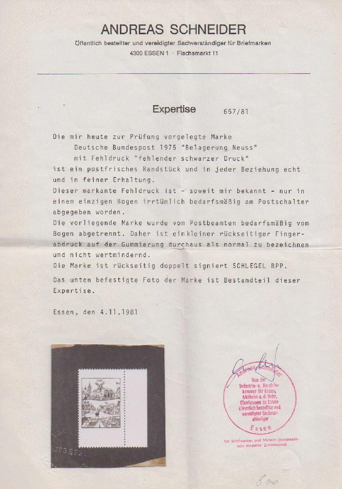 | Zusatzinformationen und Suchstichworte: | Rauhut & Kruschel - 227. Auktion Auktionstermin: 6. September 2024 Los 4032 Bundesrepublik Deutschland 50 Pfg. Belagerung von Neuss, Abart "Inschriften (Wertziffer usw.) fehlend" postfrisch vom rechten Bogenrand, am Unterrand leichte Fingerabdruckspur von der bedarfsmäßigen Trennung (nur ein Bogen bekannt). Zuschlag 200,00 EUR |