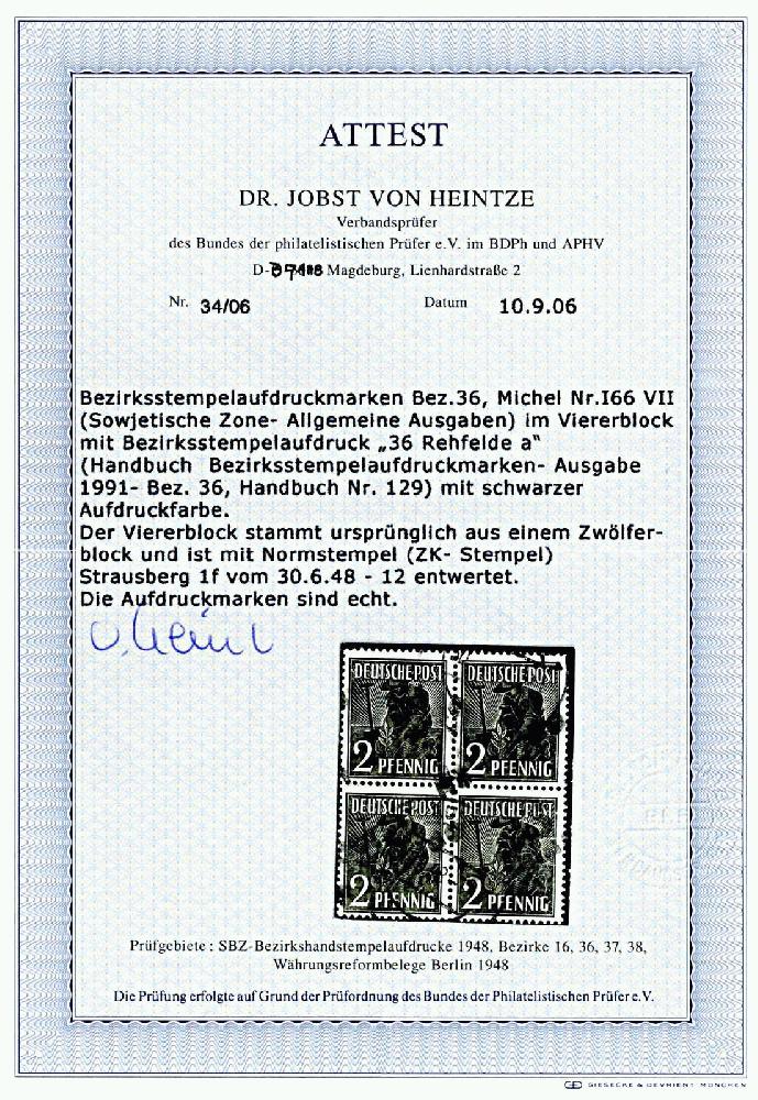 | Prüfgebiet: | Alliierte Besetzung SBZ Bezirkshandstempel Bezirk 36 |
