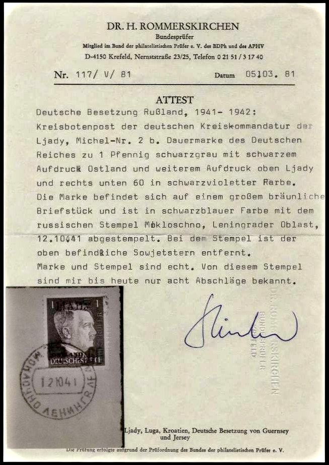 | Prüfgebiet: | Deutsche Besetzung WK 2 Russland Ljady |