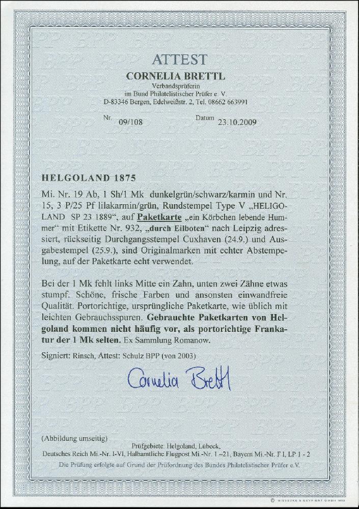 | Prüfer: | Brettl, Cornelia (BPP (Bund Philatelistischer Prüfer)) |